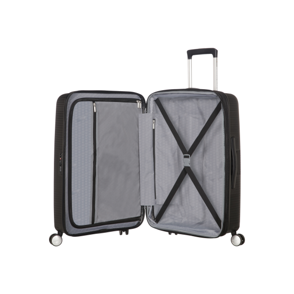 De Soundbox-collectie is een van de meest in het oog springende ooit van American Tourister. Met de speelse cirkels met contrasterend mat en glanzend oppervlak sta je gegarandeerd in de schijnwerpers, waar je ook reist. De uitbreidbaarheid, het vaste TSA-slot en de handige organisatiemogelijkheden binnenin maken deze koffer tot je ultieme reispartner! American Tourister geeft 3 jaar wereldwijde (beperkte) garantie op deze collectie.